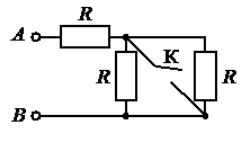 На сколько уменьшится сопротивление участка цепи АВ, изображённого на рисунке, если ключ К замкнуть? Сопротивление каждого резистора 𝑅=2 Ом.