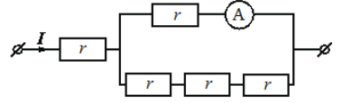 По участку электрической цепи (см. рисунок) течёт постоянный ток 𝐼=4 А. Какую силу тока показывает амперметр, если сопротивление 𝑟=1 Ом? Сопротивлением амперметра пренебречь.