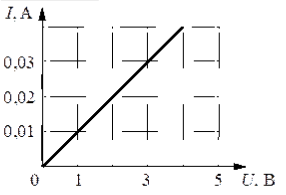 На рисунке показан график зависимости силы тока, протекающего в резисторе, от напряжения на его концах. Определите сопротивление резистора.