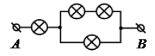 Ученик соединил четыре лампочки накаливания так, как показано на рисунке. Определите сопротивление цепи между точками A и B, если сопротивление каждой лампочки равно 12 Ом.
