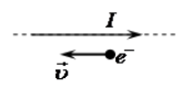 Электрон имеет скорость v, направленную вдоль прямого длинного проводника с током I (см. рисунок). Куда направлена относительно рисунка (вправо, влево, вверх, вниз, к наблюдателю, от наблюдателя) действующая на электрон сила Лоренца? Ответ запишите словом (словами).