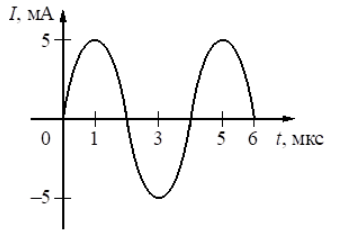 На рисунке приведён график зависимости силы тока в идеальном колебательном контуре от времени в процессе свободных электромагнитных колебаний. Каким станет период свободных электромагнитных колебаний в контуре, если конденсатор в этом контуре заменить на другой, ёмкость которого в 4 раза меньше?