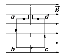 Квадратная проволочная рамка расположена в однородном магнитном поле так, как показано на рисунке. Направление тока в рамке показано стрелками. Как направлена относительно рисунка (вправо, влево, вверх, вниз, к наблюдателю, от наблюдателя) сила, действующая на сторону аb рамки со стороны внешнего магнитного поля ? Ответ запишите словом (словами).