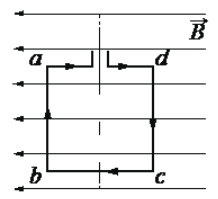 Квадратная проволочная рамка расположена в однородном магнитном поле так, как показано на рисунке. Направление тока в рамке показано стрелками. Куда направлена относительно рисунка (вправо, влево, вверх, вниз, к наблюдателю, от наблюдателя) сила, действующая на сторону аb рамки со стороны внешнего магнитного поля с индукцией В? Ответ запишите словом (словами).