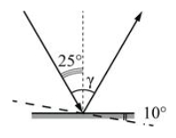 Угол падения луча света на горизонтальное плоское зеркало равен 25°. Каким будет угол γ, образованный падающим и отражённым лучами, если повернуть зеркало на 10° так, как показано на рисунке?