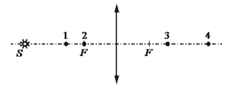 Какая точка является изображением точки S (см. рисунок), создаваемым тонкой собирающей линзой с фокусным расстоянием F?