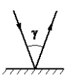 Луч света падает на плоское зеркало. Угол падения равен 20°. Определите угол γ между падающим и отражённым лучами (см. рисунок).