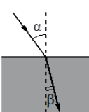 Световой пучок переходит из воздуха в керосин (см. рисунок). Что происходит при этом переходе с частотой электромагнитных колебаний в световой волне и скоростью её распространения?