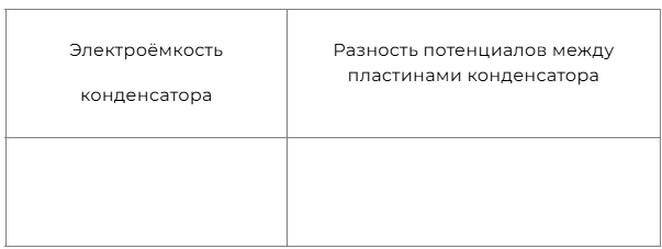 В воздушный зазор между пластинами плоского заряженного конденсатора, отключённого от источника напряжения, медленно вдвигают диэлектрическую пластинку. Как изменяются с течением времени электроёмкость конденсатора и разность потенциалов между его пластинами?