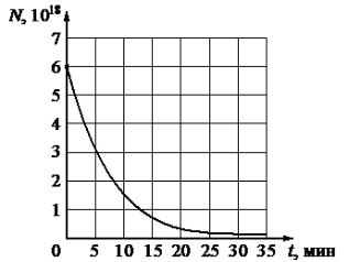 Дан график зависимости числа нераспавшихся ядер иридия от времени. Каков период полураспада этого изотопа?