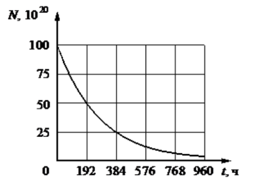 Дан график зависимости числа нераспавшихся ядер йода от времени. Каков период полураспада этого изотопа?