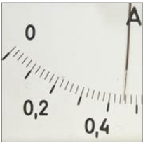 Определите показания амперметра (см. рисунок), если абсолютная погрешность прямого измерения силы тока равна цене деления амперметра.