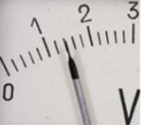 Определите показания вольтметра (см. рисунок), если погрешность прямого измерения напряжения равна цене деления вольтметра. Вольтметр проградуирован в вольтах.