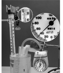 При исследовании зависимости давления газа от температуры ученик измерял давление в сосуде с газом с помощью манометра. Шкала манометра проградуирована в мм рт. ст. Абсолютная погрешность измерений давления равна цене деления шкалы манометра. Каково показание манометра с учётом погрешности измерений?