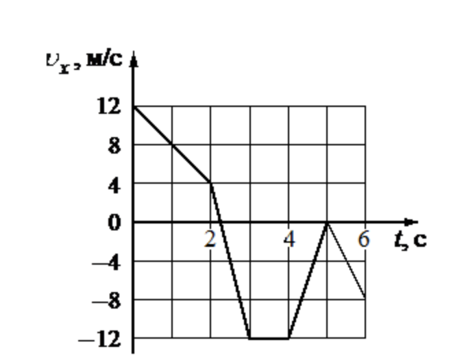 На рисунке показан график зависимости от времени для проекции vX скорости тела. Какова проекция ax ускорения этого тела в интервале времени от 5 до 6 c?