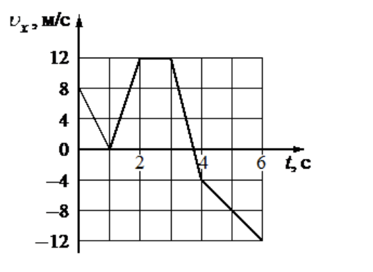 На рисунке показан график зависимости проекции vx скорости тела от времени t. Какова проекция ax ускорения этого тела в интервале времени от 3 до 4 c.