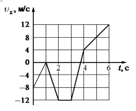 На рисунке показан график зависимости проекции vx скорости тела от времени t. Какова проекция ax ускорения этого тела в интервале времени от 4 до 6 c?