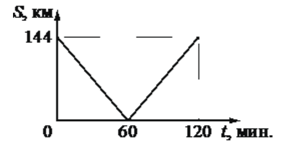 Из двух городов навстречу друг другу с постоянной скоростью движутся два автомобиля. На графике показано изменение расстояния между автомобилями с течением времени. Какова скорость первого автомобиля в системе отсчёта, связанной со вторым автомобилем?