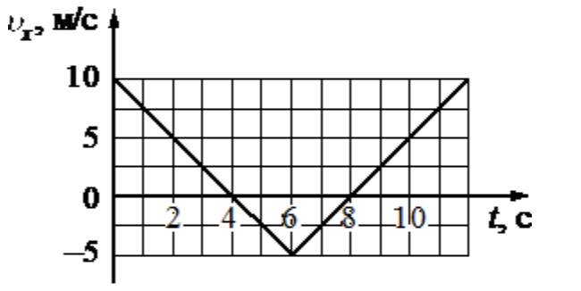 Тело движется вдоль оси Оx. По графику зависимости проекции скорости тела υx от времени t установите модуль перемещения тела за время от t1 = 6 c до t2 = 10 c.