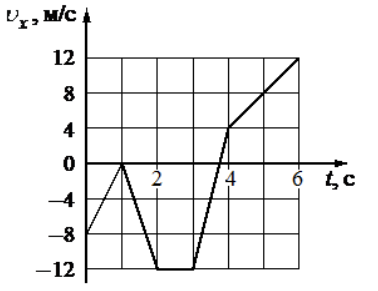 На рисунке показан график зависимости от времени для проекции vx скорости тела. Какова проекция ax ускорения этого тела в интервале времени от 3 до 4 c?