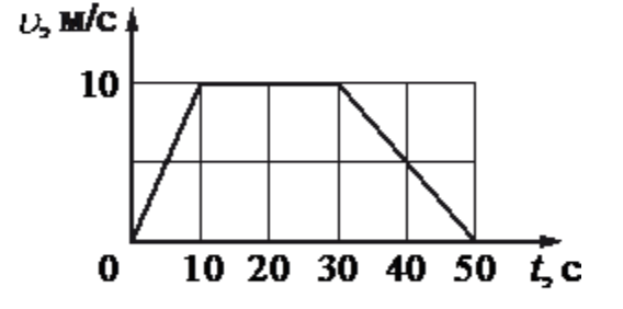 На рисунке представлен график зависимости модуля скорости v автомобиля от времени t. Найдите путь, пройденный автомобилем за время от 30 до 50 с.
