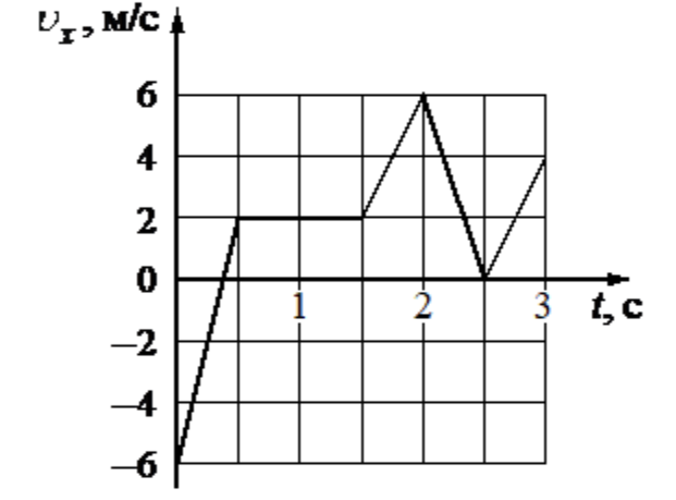 На рисунке показан график зависимости проекции vx скорости тела от времени t. Какова проекция ускорения ax этого тела в интервале времени от 1,5 до 2 c?