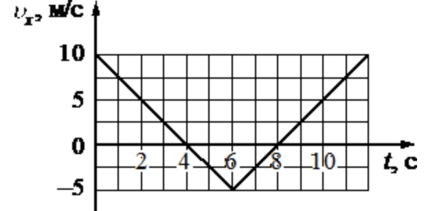 Тело движется вдоль оси Оx. По графику зависимости проекции скорости тела υx от времени t установите модуль перемещения тела за время от t1 = 2 c до t2 = 6 c.