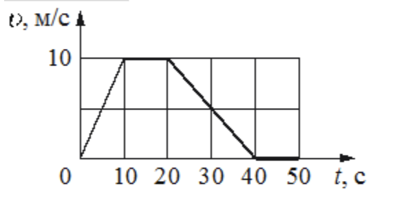 На рисунке представлен график зависимости модуля скорости υ автомобиля от времени t. Определите по графику путь, пройденный автомобилем в интервале времени от 0 до 40 с после начала движения.