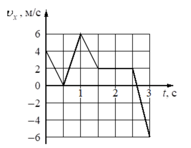 На рисунке показан график зависимости проекции скорости тела от времени t. Какова проекция ax ускорения этого тела в интервале времени от 1 до 1,5 c?