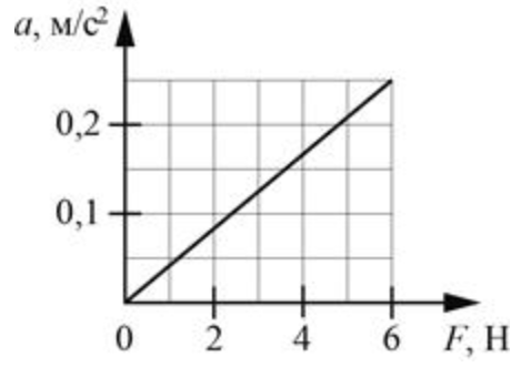 На графике приведена зависимость ускорения бруска, скользящего без трения по горизонтальной поверхности, от величины приложенной к нему горизонтальной силы. Систему отсчёта считать инерциальной. Чему равна масса бруска?