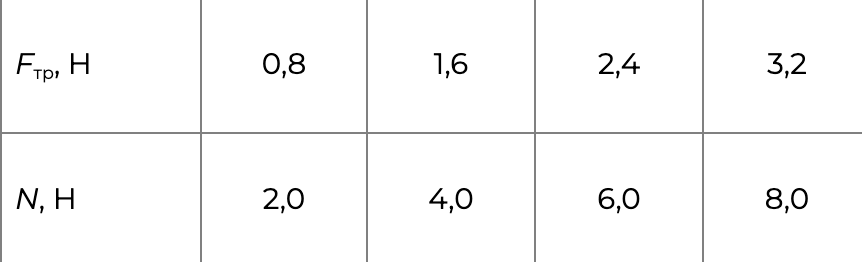 При исследовании зависимости модуля силы трения скольжения Fтр от модуля нормальной составляющей силы реакции опоры были получены следующие данные.