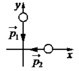 Два тела движутся по взаимно перпендикулярным пересекающимся прямым, как показано на рисунке. Модуль импульса первого тела р1 = 8 кг м/с, второго тела р2 = 6 кг м/с. Каков модуль импульса системы этих тел после их абсолютно неупругого удара?