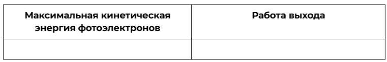 При исследовании зависимости кинетической энергии фотоэлектронов от частоты падающего света фотоэлемент освещался через светофильтры. В первой серии опытов использовался светофильтр, пропускающий только синий свет, а во второй – пропускающий только жёлтый. В каждом опыте наблюдали явление фотоэффекта. Как изменяются максимальная кинетическая энергия фотоэлектронов и работа выхода при переходе от первой серии опытов ко второй?