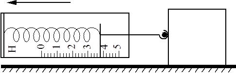 Динамометр с прикреплённым к нему бруском тянут влево, как показано на рисунке. Брусок движется с постоянной скоростью. Абсолютная погрешность измерения силы при помощи динамометра равна цене деления прибора. Запишите значение силы трения скольжения, действующей на брусок, с учётом абсолютной погрешности измерений.
