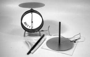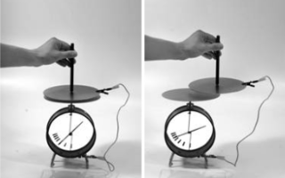 Воспользовавшись оборудованием, представленным на рис. 1, учитель собрал модель плоского конденсатора (рис. 2), зарядил нижнюю пластину положительным зарядом, а корпус электрометра заземлил. Соединённая с корпусом электрометра верхняя пластина конденсатора приобрела отрицательный заряд, равный по модулю заряду нижней пластины. После этого учитель сместил одну пластину относительно другой не изменяя расстояния между ними (рис. 3). Как изменились при этом показания электрометра (увеличились, уменьшились, остались прежними)? Ответ поясните, указав, какие явления и закономерности Вы использовали для объяснения. Показания электрометра в данном опыте прямо пропорциональны разности потенциалов между пластинами конденсатора.