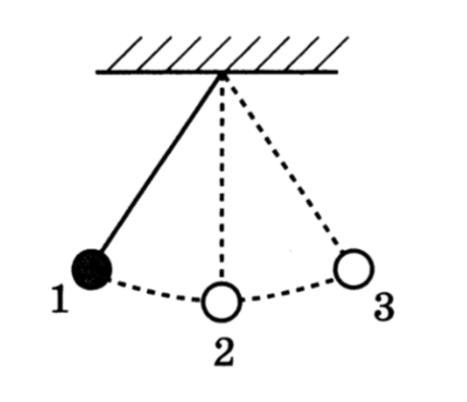 Математический маятник с частотой свободных колебаний 2 Гц отклонили на небольшой угол от положения равновесия в положение 1 и отпустили из состояния покоя (см. рисунок). Из приведённого ниже списка выберите все верные утверждения о колебаниях маятника. Сопротивлением воздуха пренебречь.