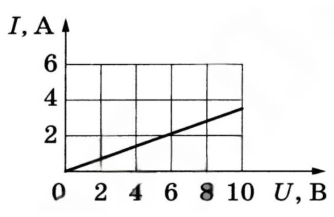 На рисунке показан график зависимости силы тока в проводнике от напряжения между его концами. Чему равно сопротивление проводника?