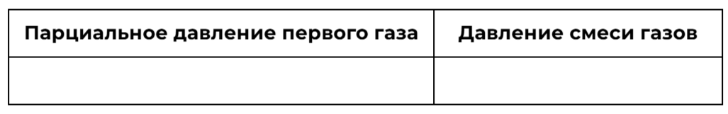 В сосуде неизменного объема находилась при комнатной температуре смесь идеальных газов, по 2 моль каждого. Половину содержимого сосуда выпустили, а затем добавили в сосуд 2 моль второго газа. Температура в сосуде поддерживалась неизменной. Как изменились в результате проведенных экспериментов парциальное давление первого газа и давление смеси газов? Для каждой величины определите соответствующий характер изменения