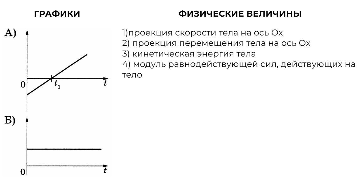 Установите соответствие между графиками и физическими величинами, зависимость которых от времени эти графики могут представлять.
