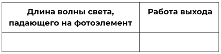 При исследовании зависимости кинетической энергии фотоэлектронов от частоты падающего света фотоэлемент освещался через светофильтры. В первой серии опытов использовался светофильтр, пропускающий только синий свет, а во второй - только зелёный. В каждом опыте наблюдали явление фотоэффекта и измеряли запирающее напряжение. Как изменятся длина световой волны и работа выхода электронов из металла при переходе от первой серии опытов ко второй?