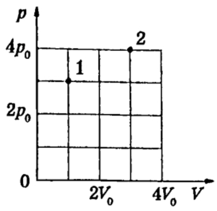 В сосуде под поршнем находится некоторое постоянное количество разреженного аргона. Во сколько раз увеличится средняя кинетическая энергия теплового движения молекул аргона, если он перейдёт из состояния 1 в состояние 2 (см. рисунок)?