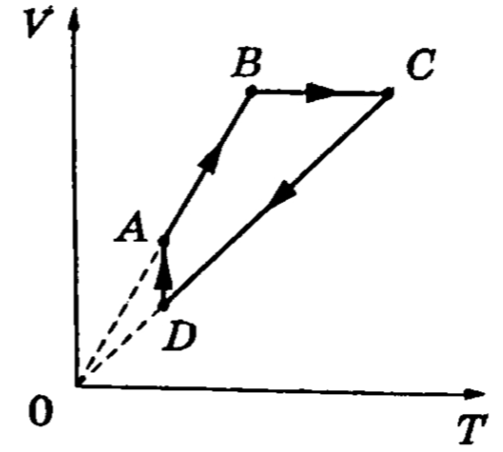 1) Давление газа в процессе CD постоянно, при этом над газом совершается положительная работа.