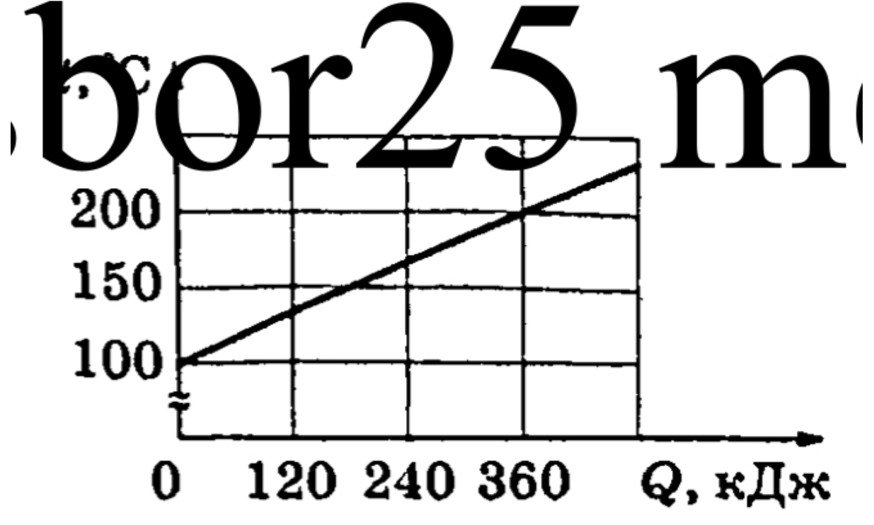 Твёрдое тело нагревают. На рисунке представлен график зависимости абсолютной температуры тела от полученного им количества теплоты. Удельная теплоёмкость вещества, из которого состоит тело, равна 720 Дж/(кг • К). Чему равна масса тела?
