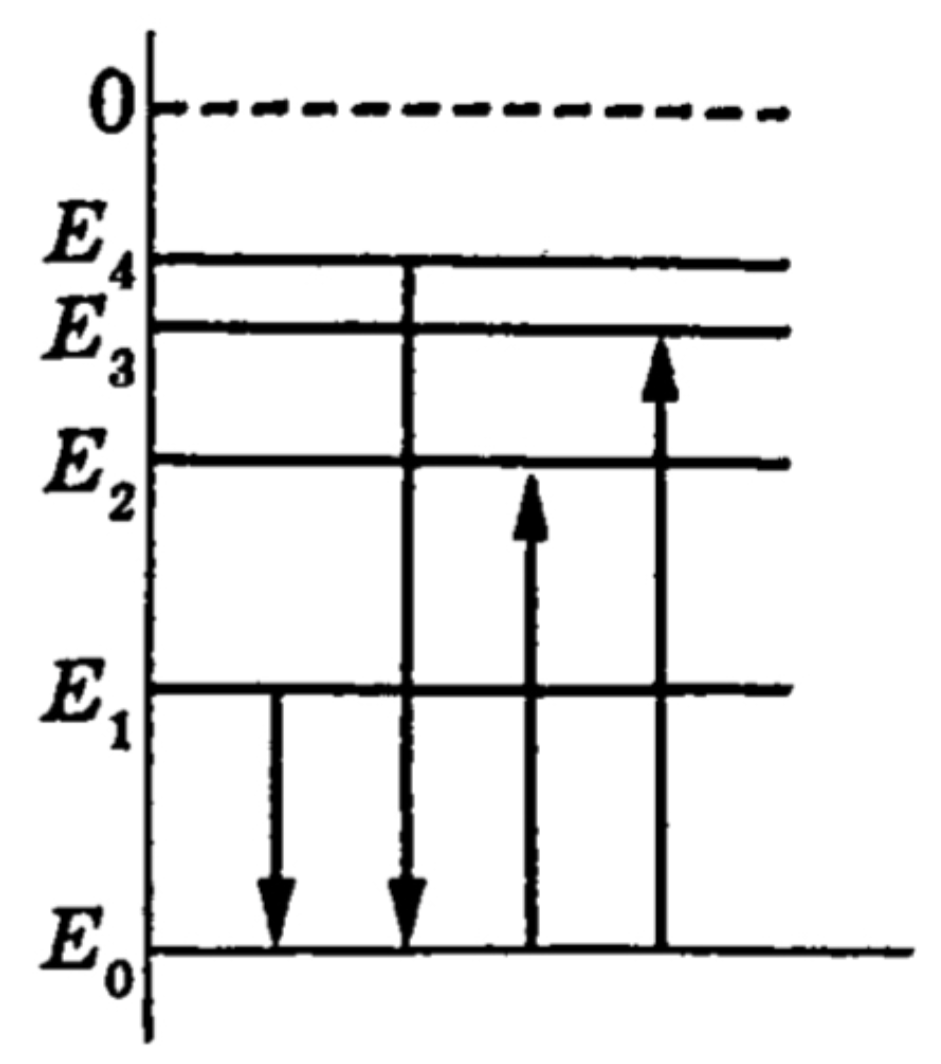 Стрелками отмечены некоторые возможные переходы атома между этими