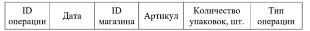 в магазин или было продано в течение дня. Заголовок таблицы имеет следующий вид.