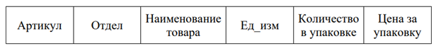 Таблица «Товар» содержит информацию об основных характеристиках каждого товара. Заголовок таблицы имеет следующий вид.