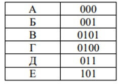 A, Б, В, Г, Д, Е, Ж и З. Для передачи используется двоичный код, удовлетворяющий условию Фано.