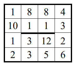 Квадрат разлинован на N×N клеток (1 < N < 30). Исполнитель Робот может перемещаться по клеткам, выполняя за одно перемещение одну из двух команд: вправо или вниз. По команде вправо Робот перемещается в соседнюю правую клетку, но команда вниз — в соседнюю нижнюю. Квадрат ограничен внешними стенами. Между соседними клетками квадрата также могут быть внутренние стены. Сквозь стену Робот пройти не может. Перед каждым запуском Робота каждый клеток квадрата лежит монета достоинством от 1 до 100. Посетив клетку, Робот забирает монету с собой; это также относится к начальной и конечной клеткам маршрута Робота.