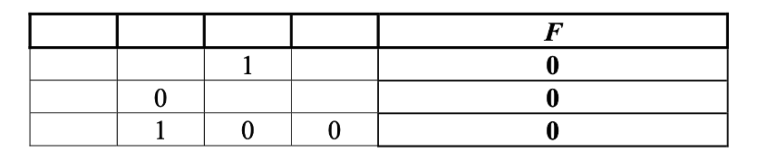 Пример. Функция F задана выражением ¬x \/ y, зависящим от двух переменных, а фрагмент таблицы имеет следующий вид.