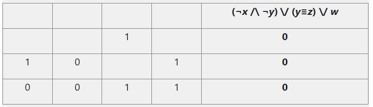 но успел заполнить лишь фрагмент из трёх различных её строк, даже не указав, какому столбцу таблицы соответствует каждая из переменных w, x, y, z.